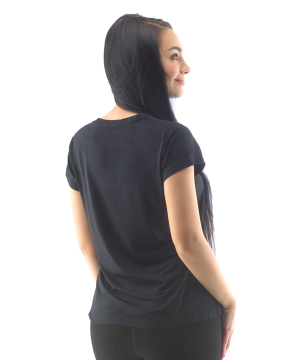 GINA 18045P je tričko s krátkým rukávem volnějšího střihu, dámské šité prádlo. Průkrčník je začištěný pružným lemem. Tričko je jednobarevné. V dolním kraji je našitý tkaný štítek s logem.