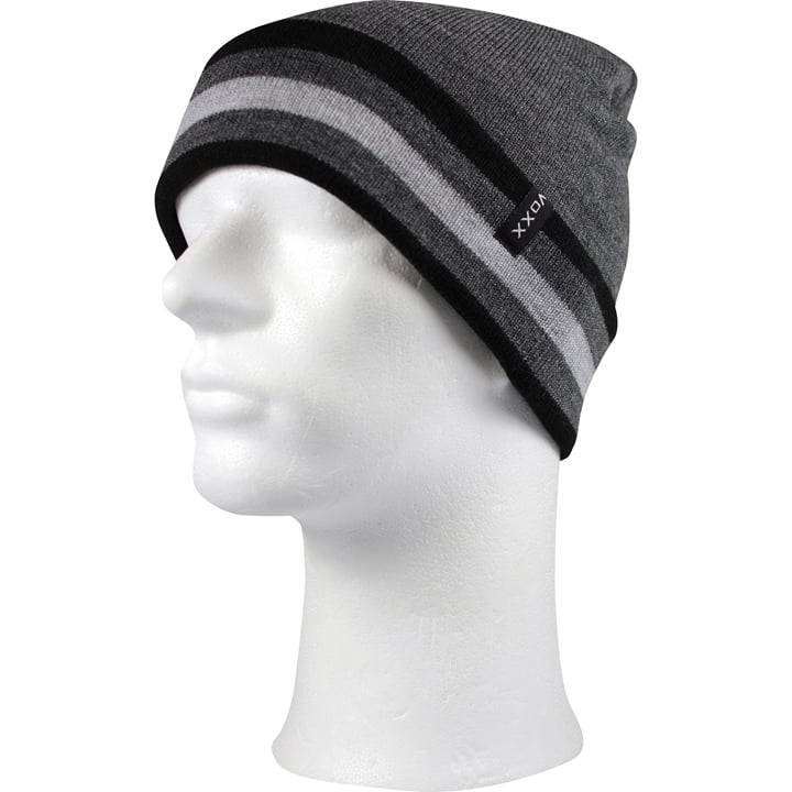 Zimní čepice RECORD je pánská oboustraná, pletená čepice vhodná na sport a každodenní nošení. Jedna strana je jednobarevná a má všitý nápis VoXX, druhá zase proužky a decentní cedulku.